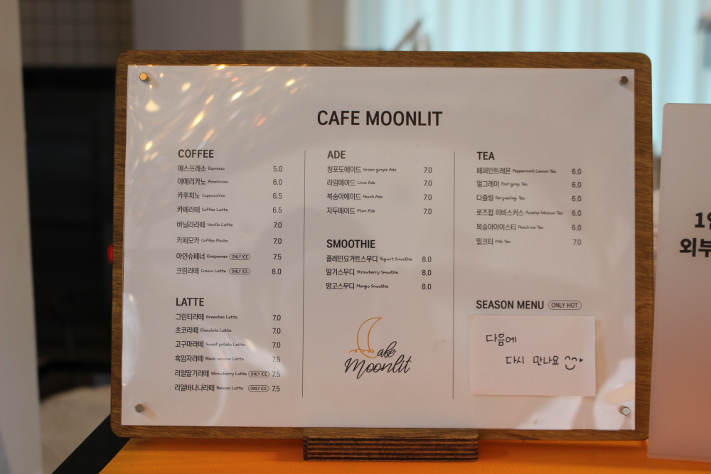 티 메뉴도 생기고 제가 갔을때 없었던 시즌 메뉴도 이제는 판매 중이에요.