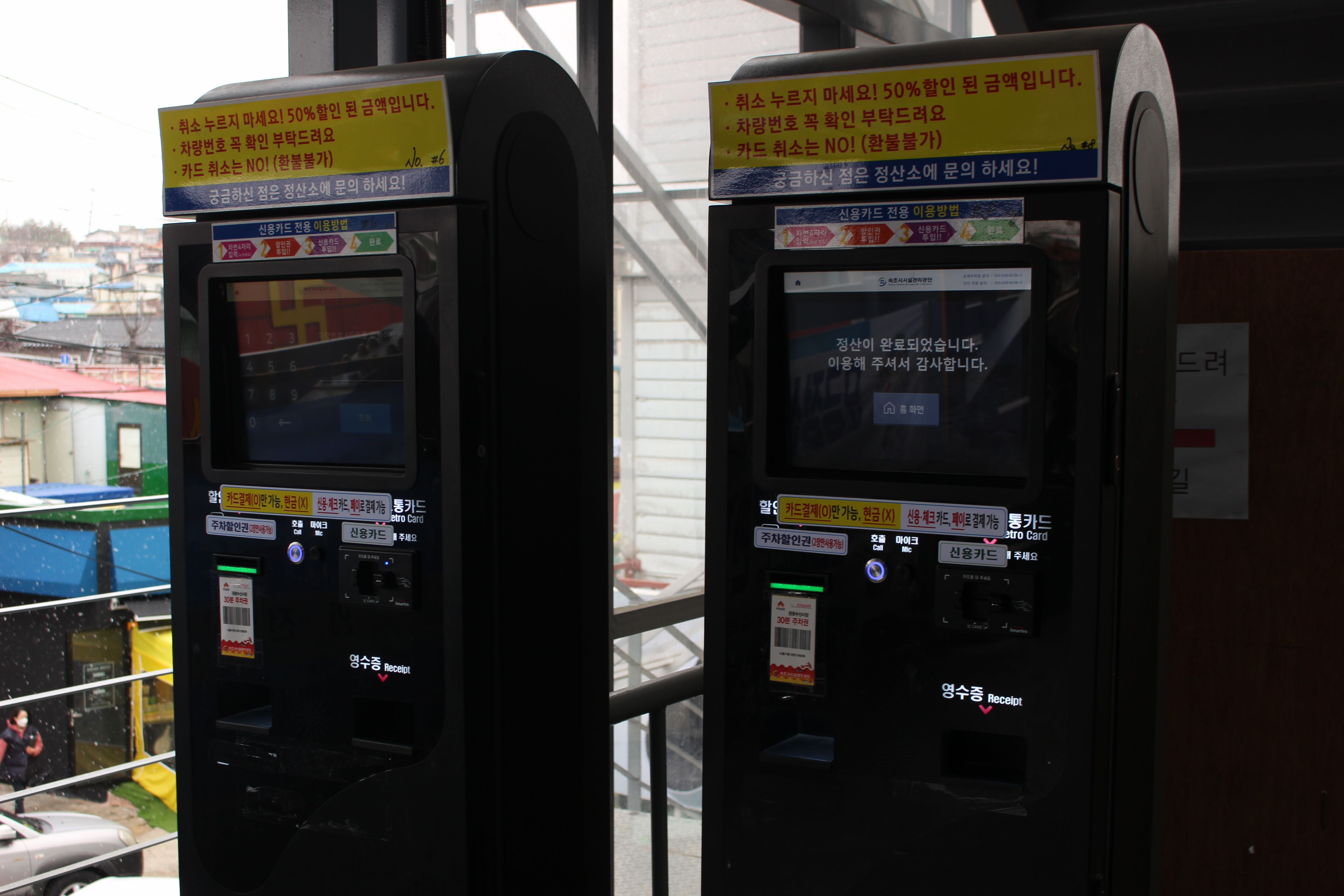 우선 차번호 4자리를 입력 후 할인권을 투입하고 추가금액이 있으면 신용카드로 결제하시면 돕니다.