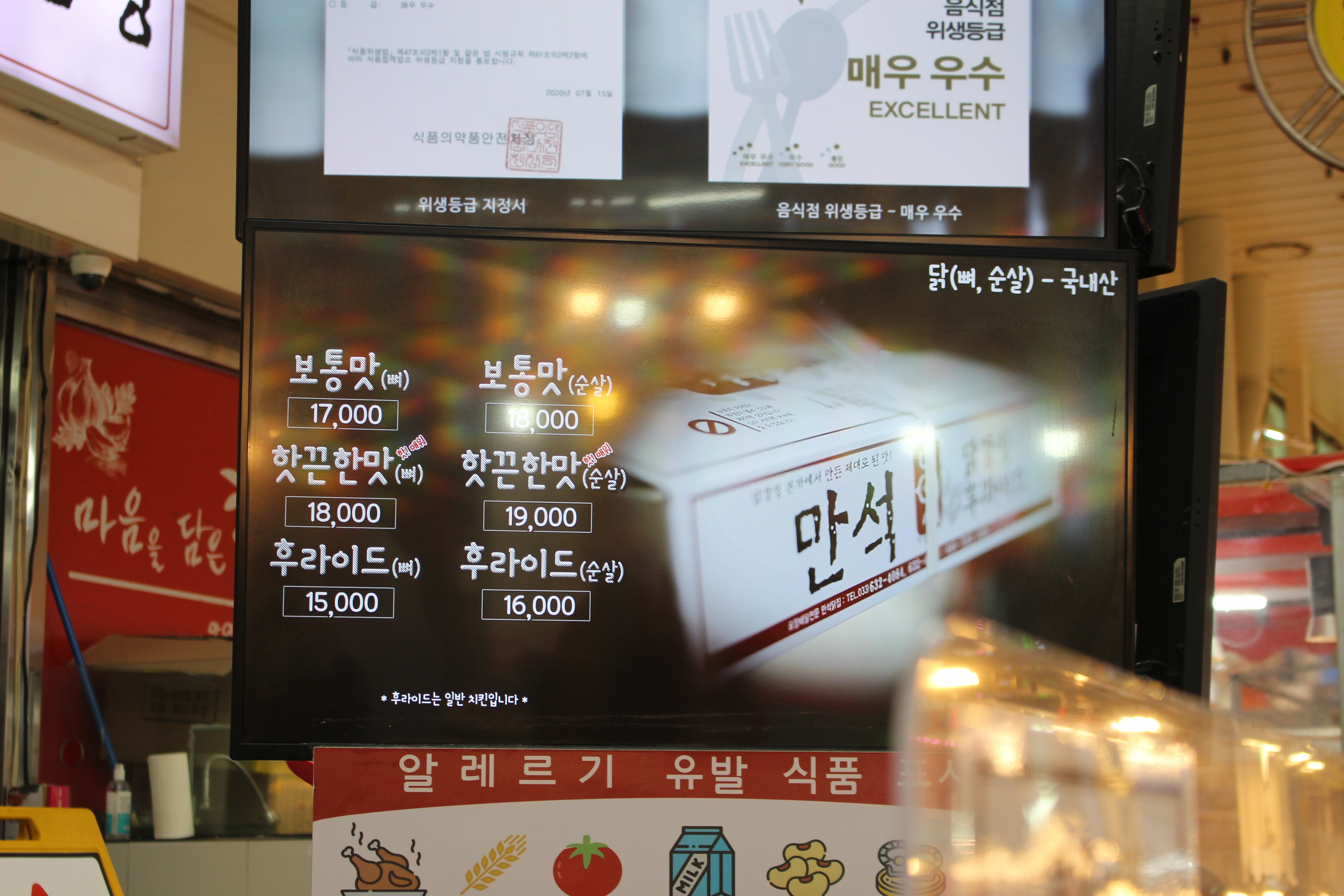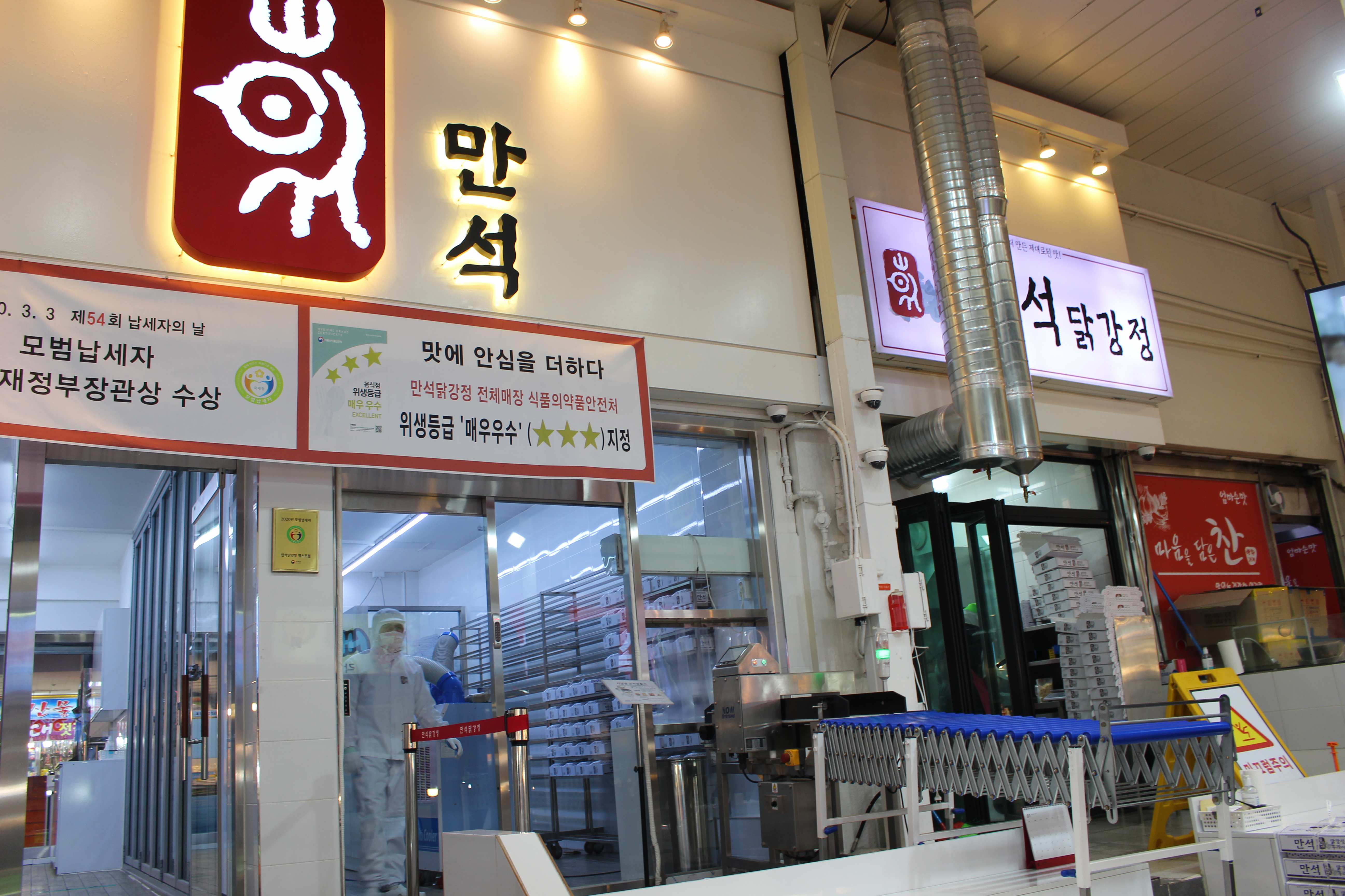 다른 음식들을 조금씩 시식해보며 만석닭강정 중앙시장점에 도착을 했습니다. 이곳은 정말 유명하죠.