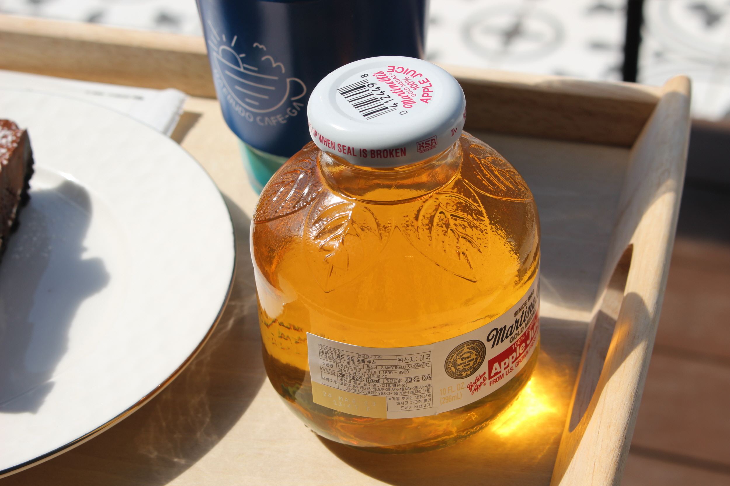 골드 메달 애플 주스도 하나 주문했습니다.