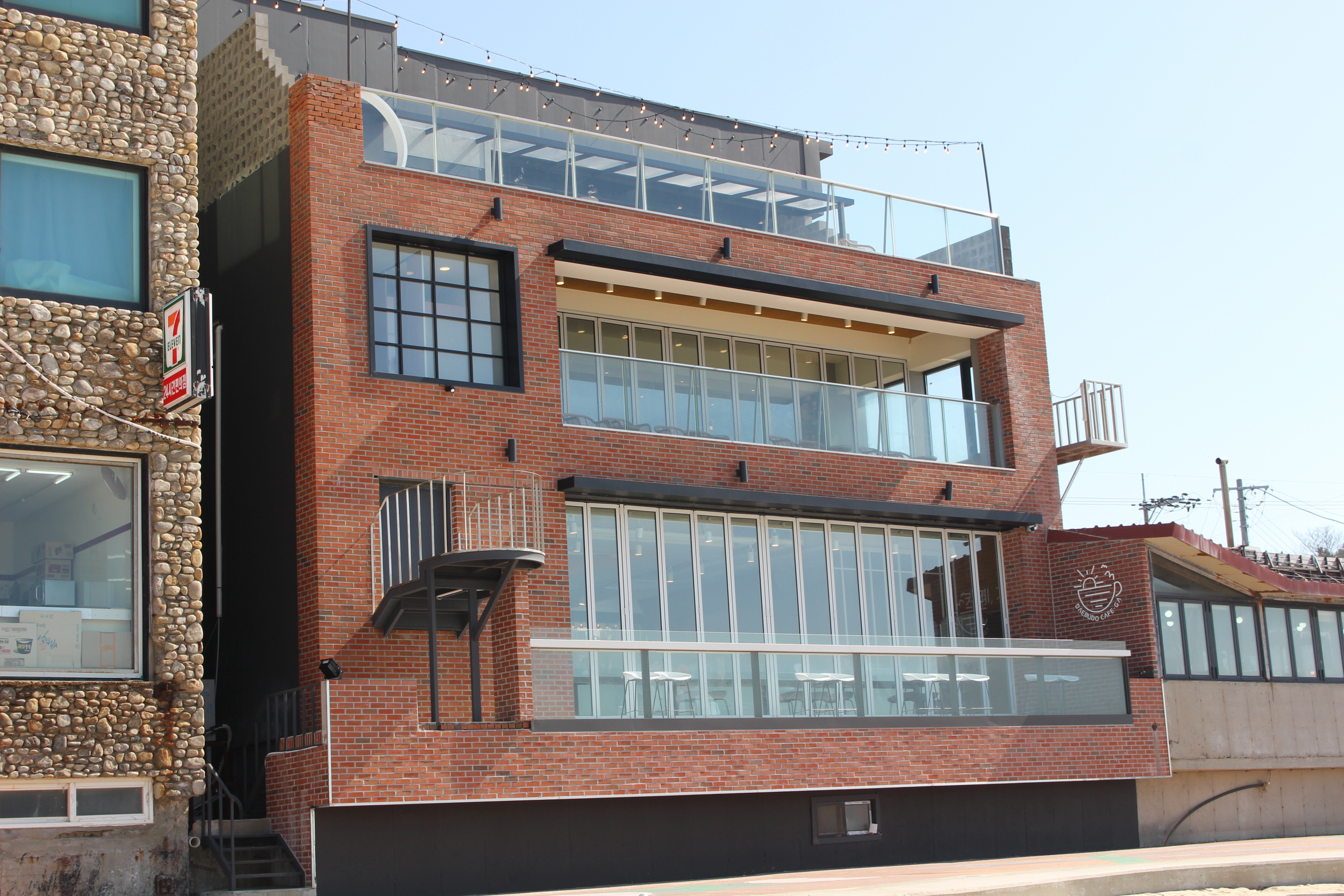 모래사장에서 바라본 카페, 가의 모습입니다. 벽돌 외관의 모습도 참 예쁘죠.