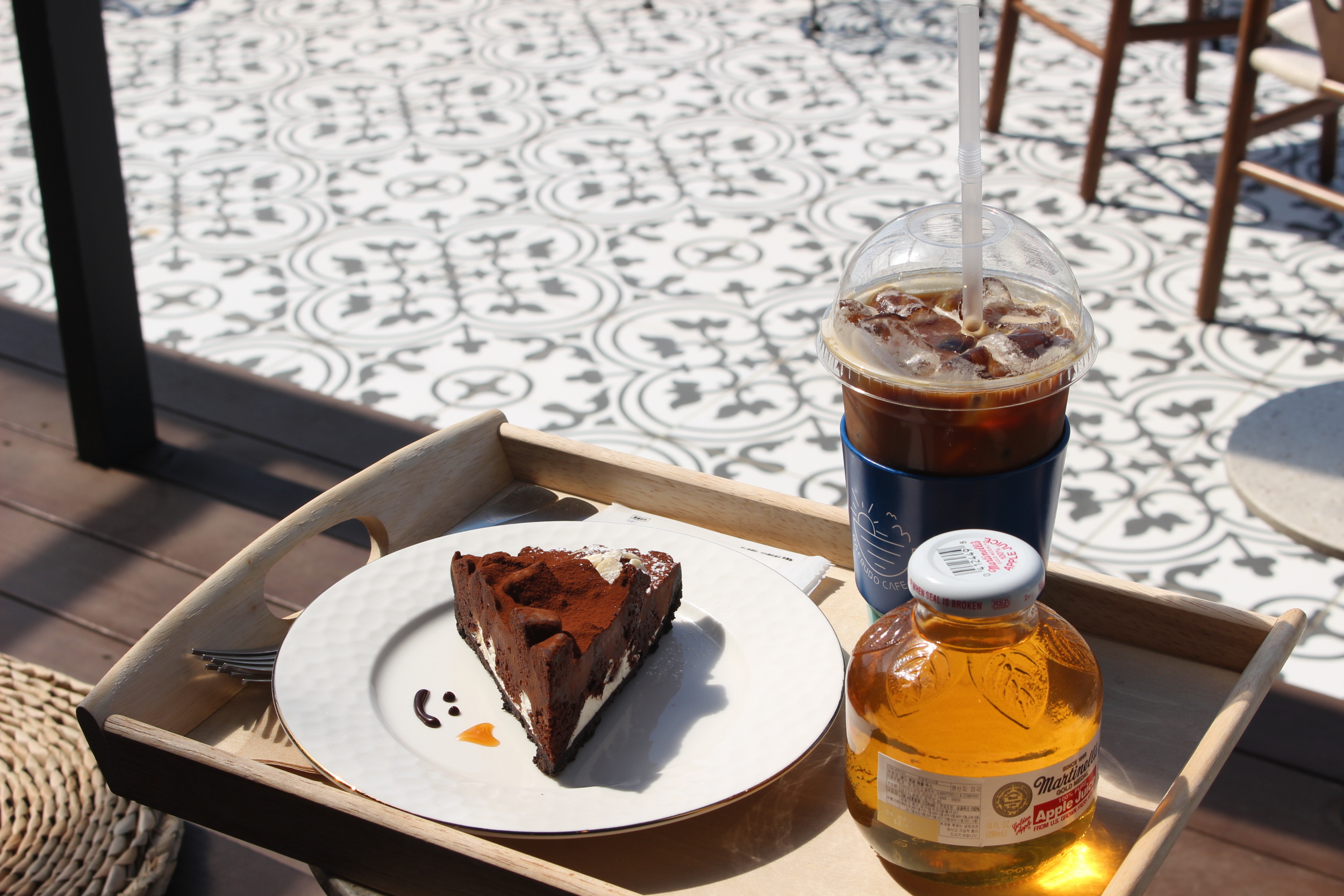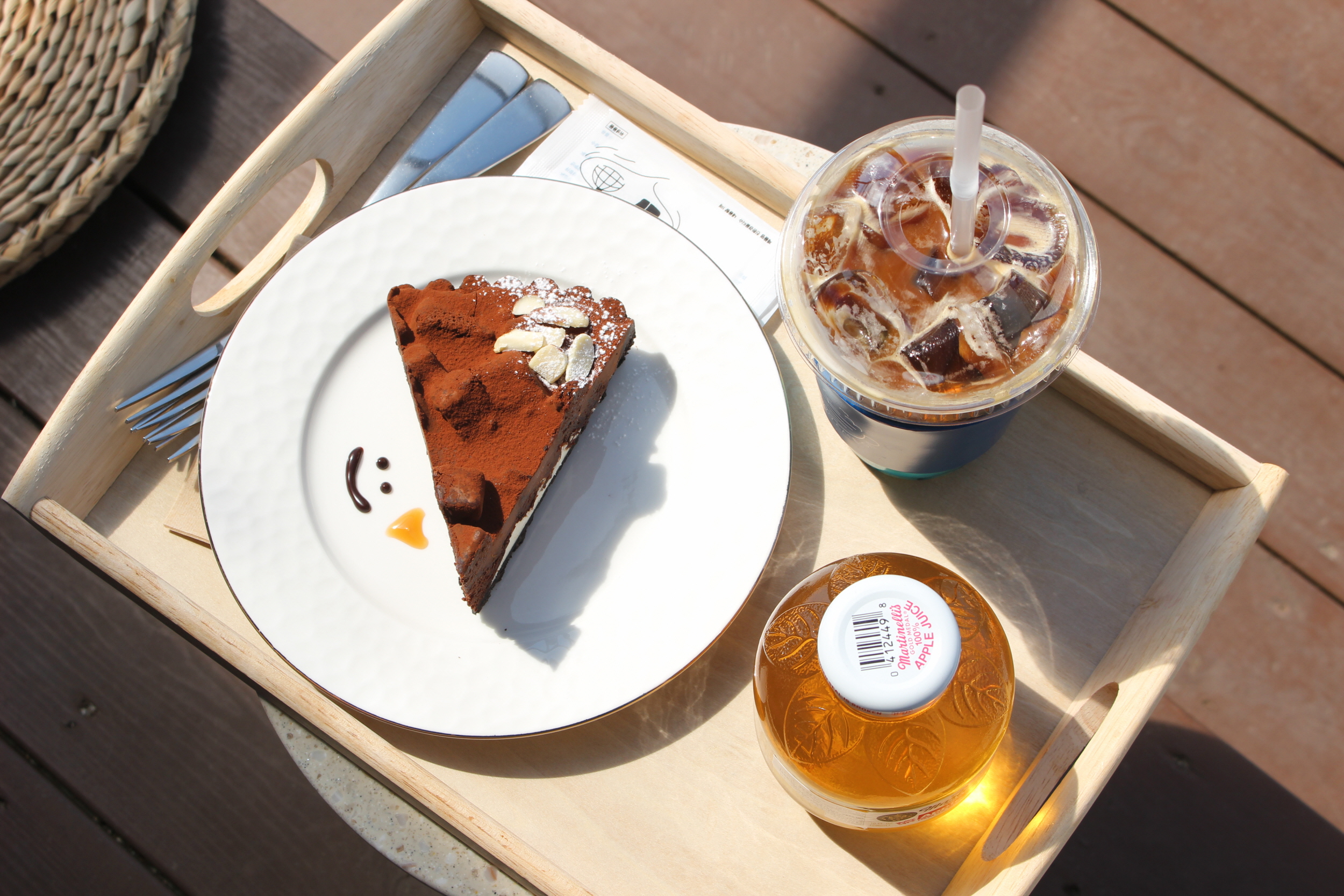 그렇게 구경하고 있으니 대부도 카페가의 음료와 디저트가 나왔습니다. 예쁜 나무 트레이에 담아주셨습니다.