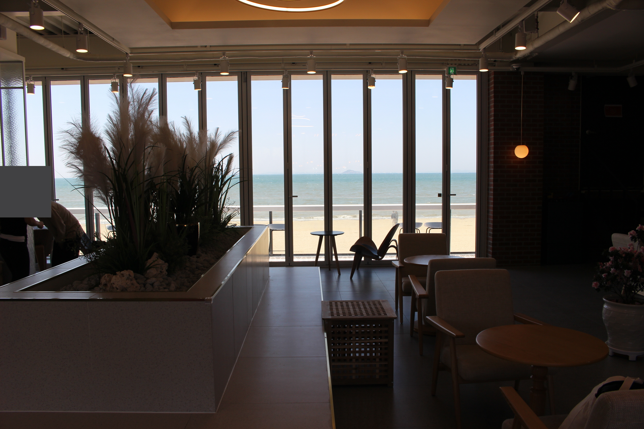 매장 내부로 들어서자마자 창밖으로 방아머리 해변이 보여서 아주 좋았습니다.