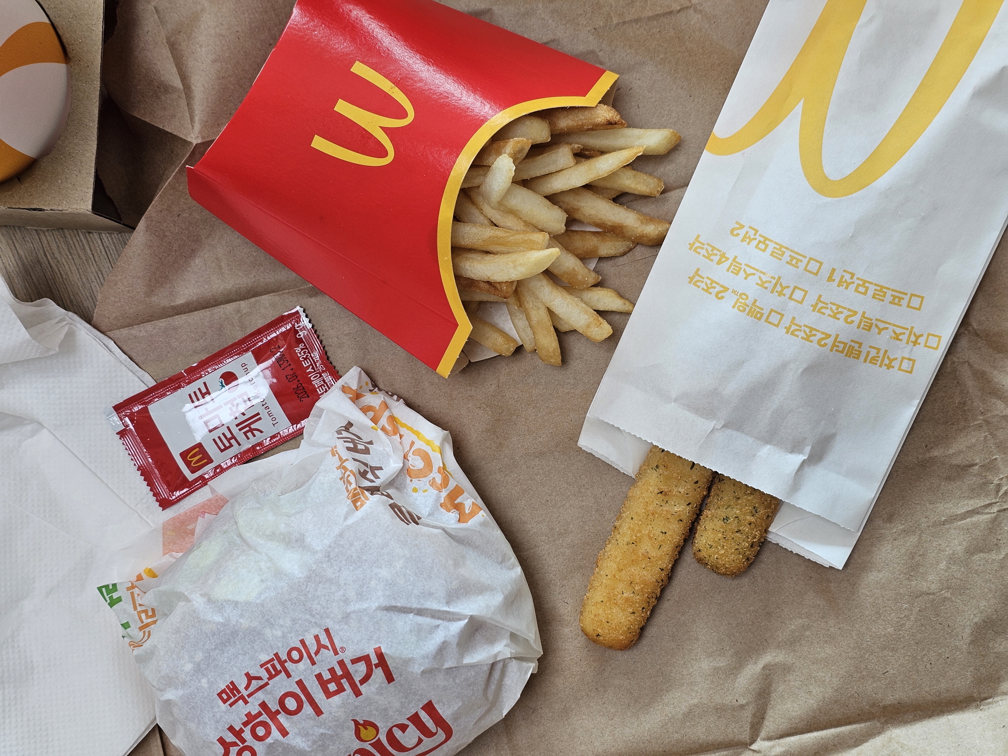 저는 맥도날드 상하이버거 세트를 주문했고 추가로 치즈스틱도 주문했어요.