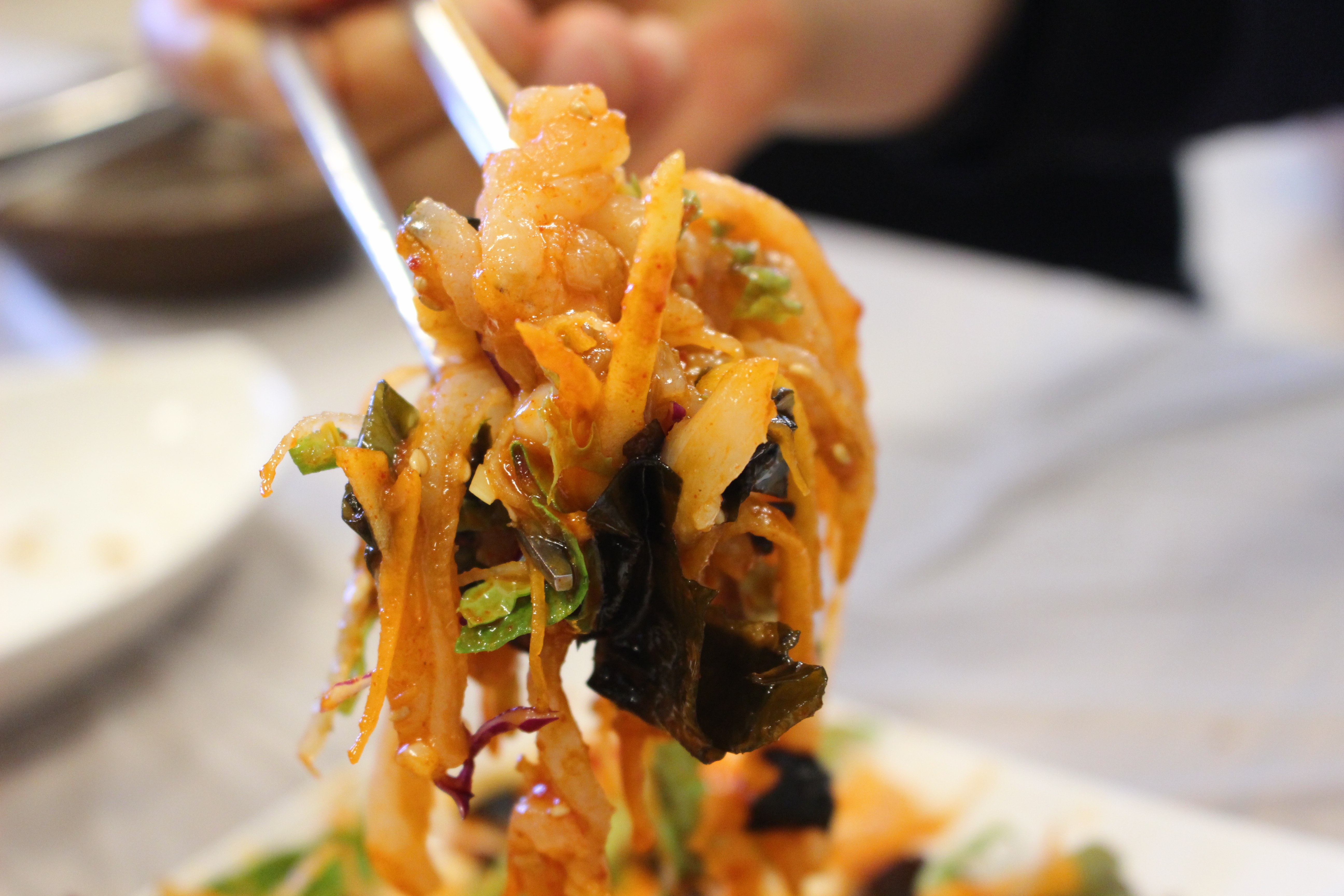 소스와 함께 버무려 한입 가득 넣어주니 새콤함과 함께 아삭함, 쫄깃한 식감까지 느낄 수 있었습니다.