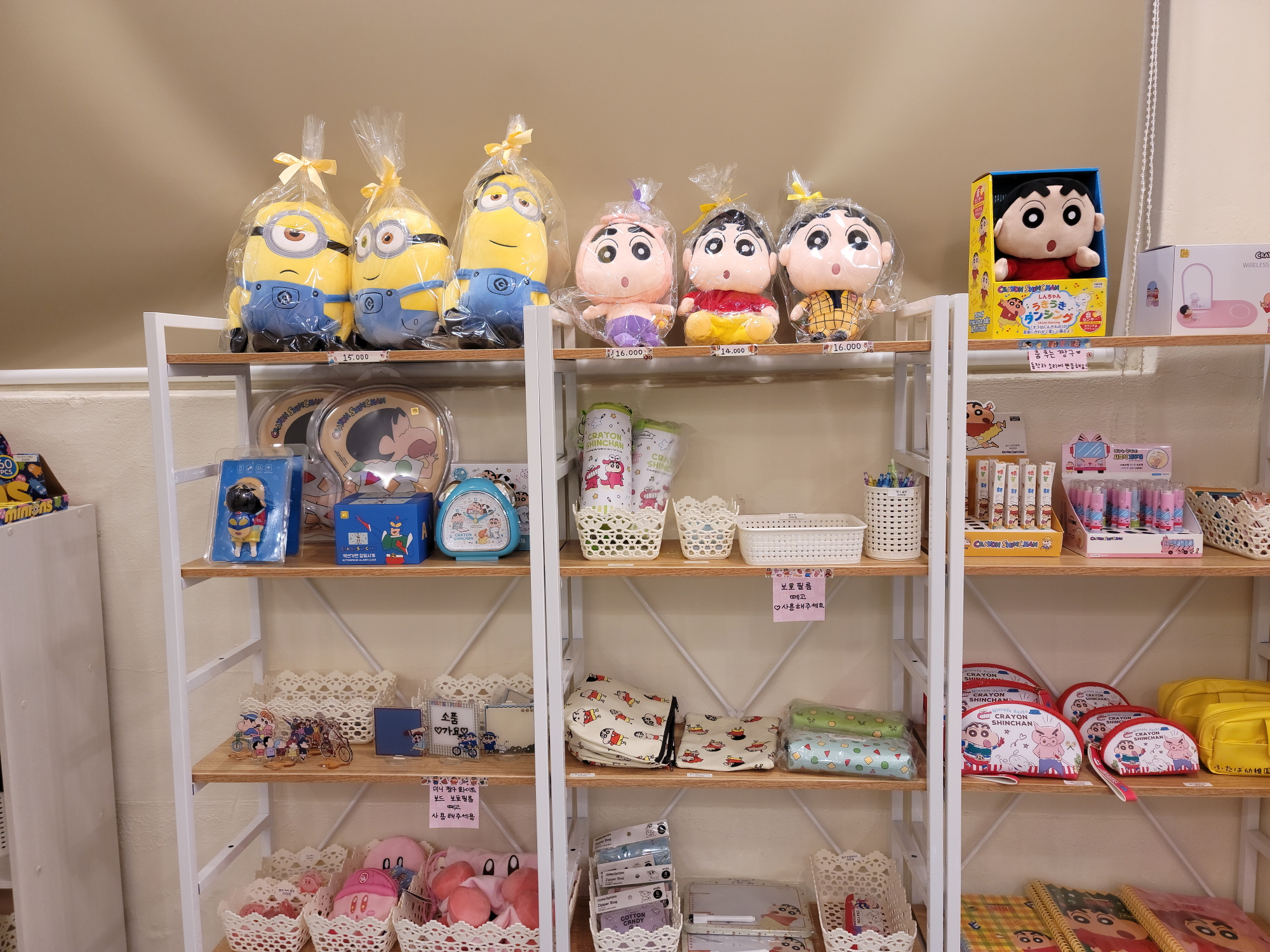 미니언즈, 짱구 인형도 있고요. 파우치도 종류가 다양했어요.