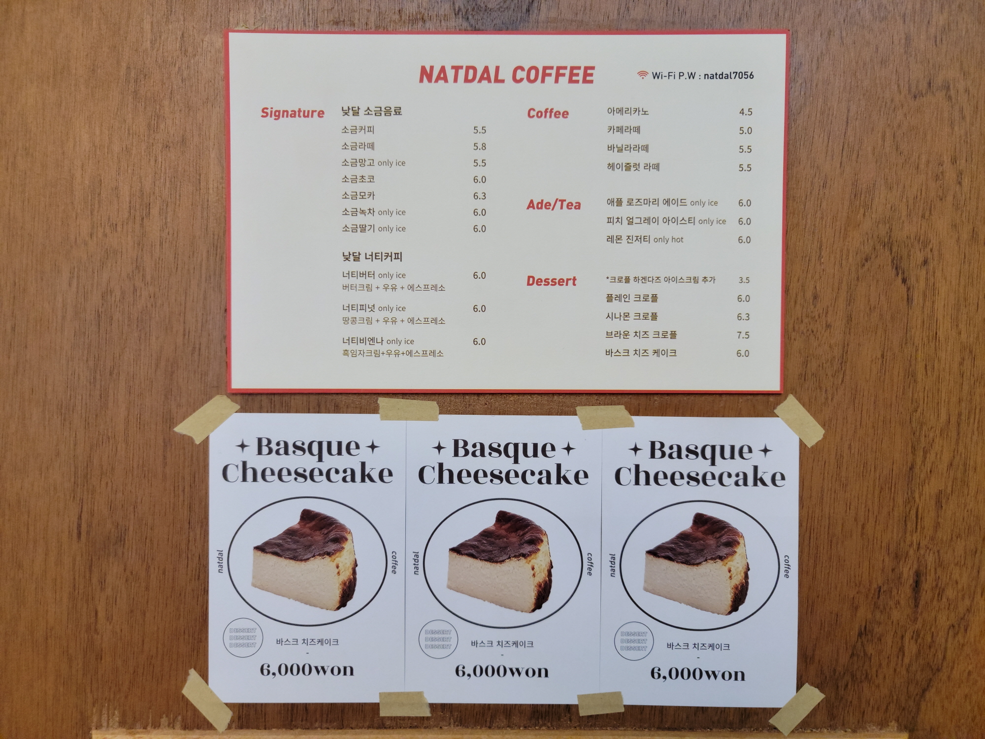 청주 율량동 카페 낮달커피에서 내돈내산 주문한 메뉴들입니다.