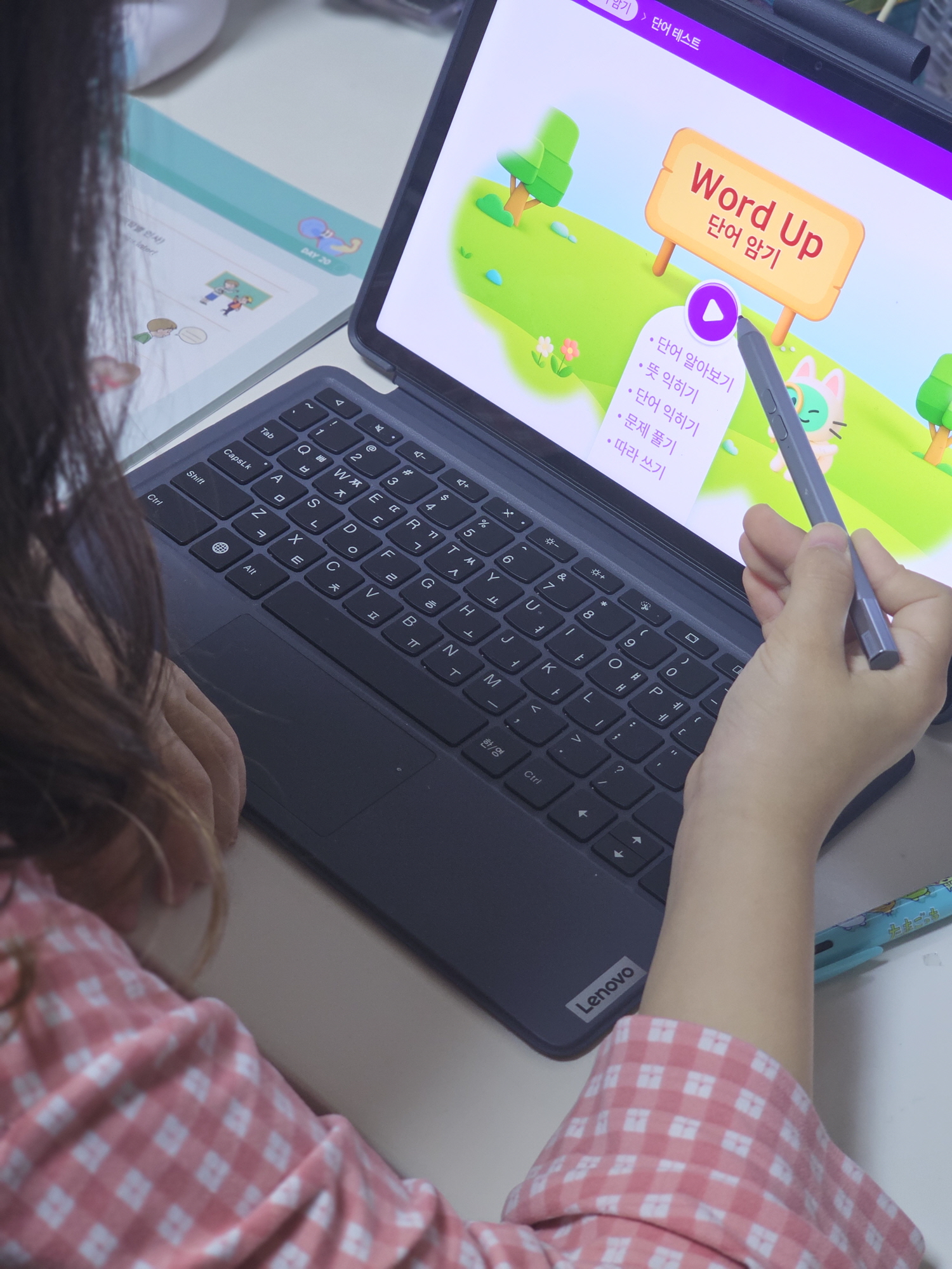 매 학습 시작 전에 Word Up으로 단어를 먼저 익히고 이후 문장 학습에서 다시 반복하면서 자연스럽게 복습하게 돼요.