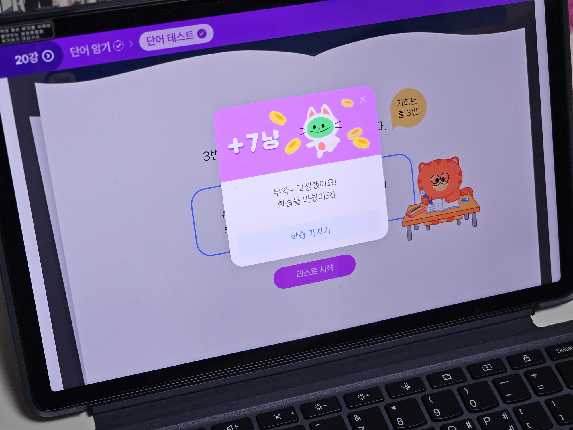 초등영어 학습을 끝내고 보상으로 7냥을 받았어요.