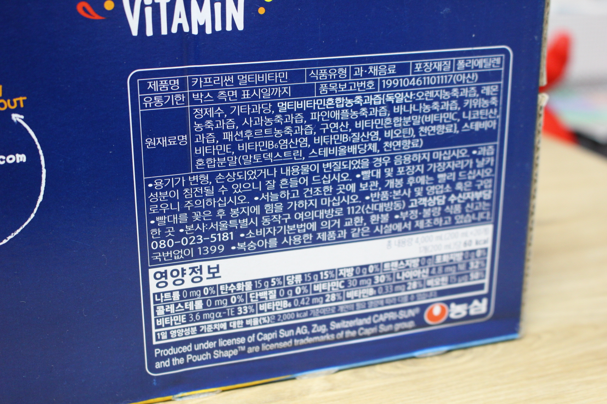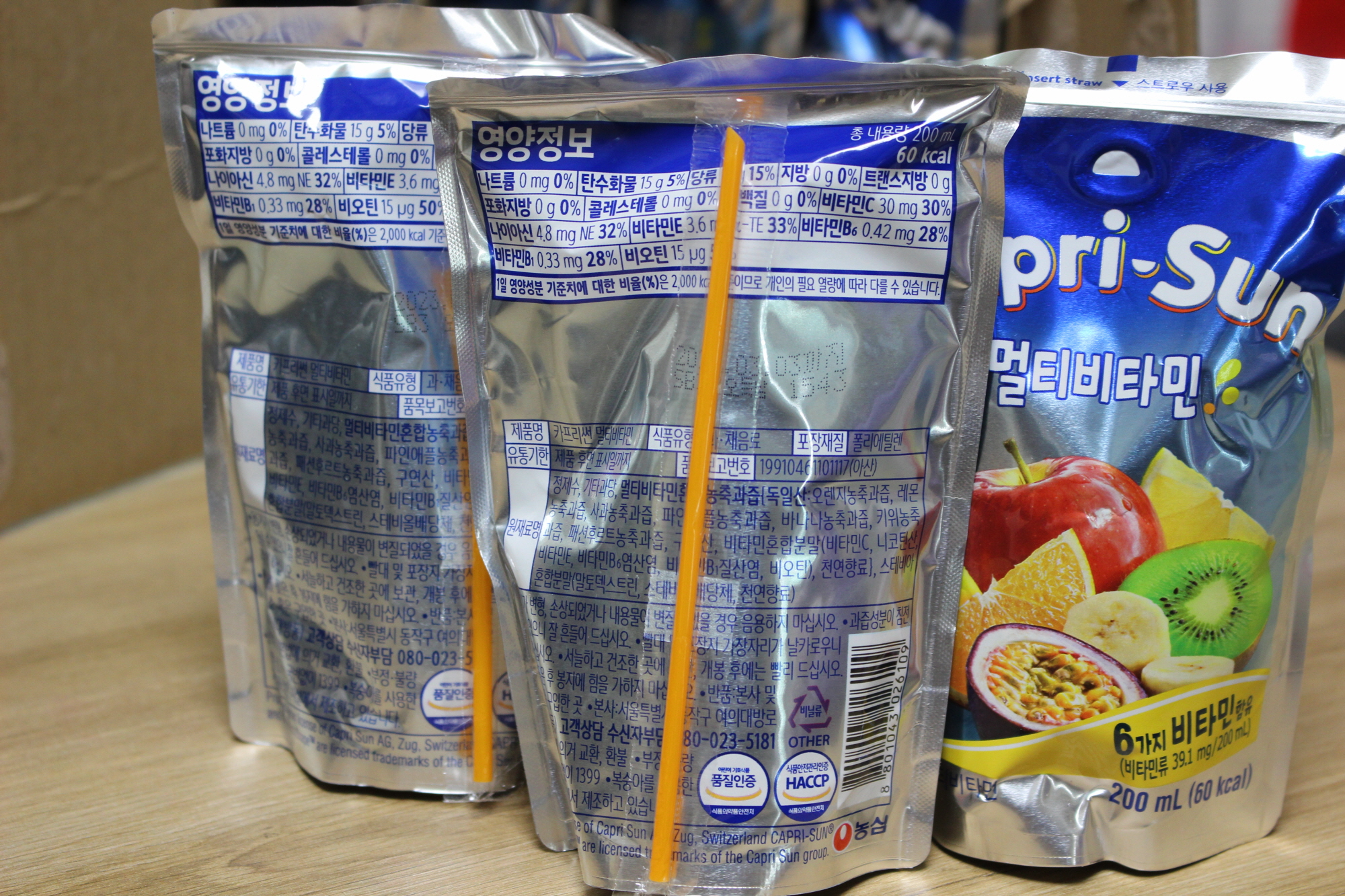 특정 과일맛이 많이 나는 게 아니라 이름 그대로 비타민 특유의 맛, 여러 가지 과일이 섞인 맛이 납니다.