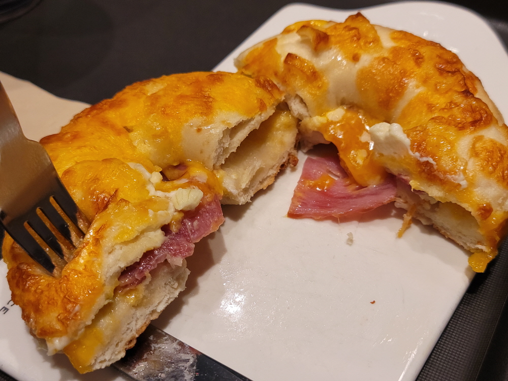 안에는 이렇게 베이컨과 함께 체다치즈가 들어가 있어요.