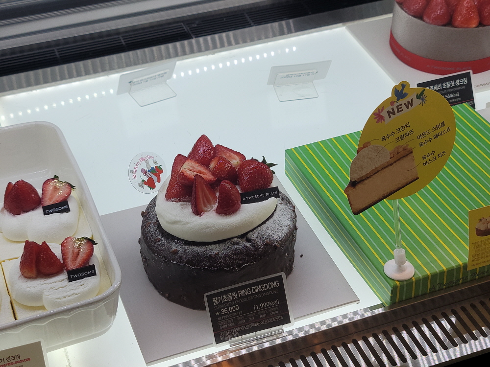홀케이크도 몇 개 나와있어서 함께 찍어봤어요. 오~ 딸기초콜릿 링 딩동 이름도 귀엽고 맛있어 보이네요.