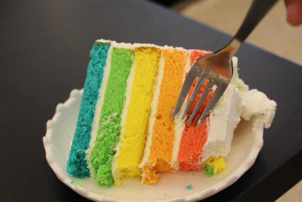 국내여행, 포항카페 더헤이븐의 무지개케이크입니다.