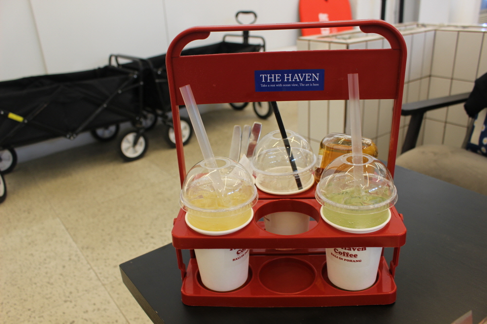 이렇게 캐리어에 커피와 음료를 가지고 나가서 바다를 구경하며 마실 수 있습니다.