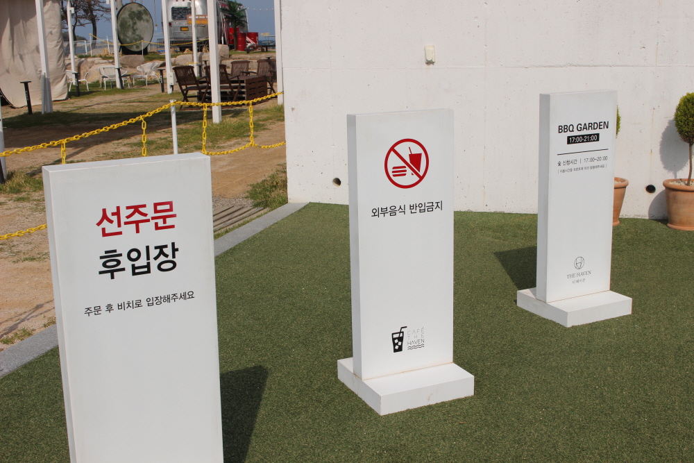 입구 쪽에는 선주문 후입장이라는 문구가 적혀 있습니다. 외부음식 반입금지입니다.